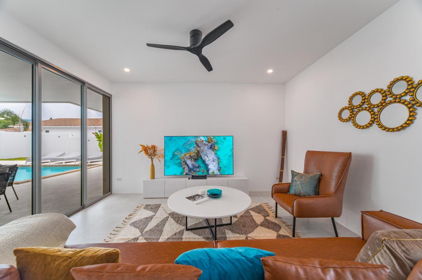 Three-Bedroom Villa. Guests will have a special experience as the villa offers a pool with a view. In the well-fitted kitchen, guests will find a refrigerator, an oven, a microwave and an electric kettle. The spacious air-conditioned villa provides a flat-screen TV, a washing machine, a private entrance, soundproof walls as well as garden views. The unit offers 3 beds.