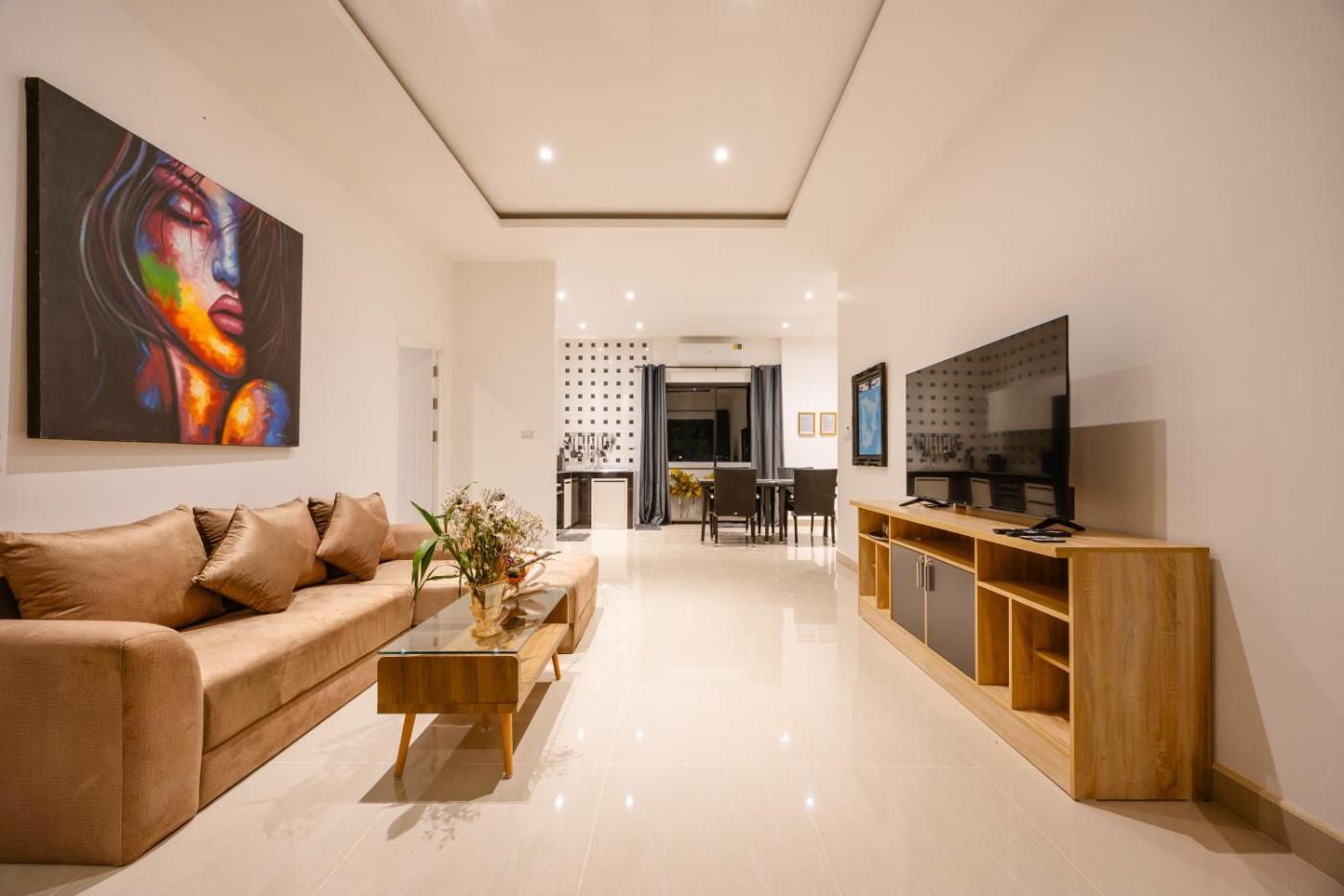 This villa features 2 bedrooms, a kitchen with an oven and a microwave, a flat-screen TV, a seating area and 2 bathrooms fitted with a shower. Towels and bed linen are available in the villa. For added privacy, the accommodation has a private entrance and soundproofing.