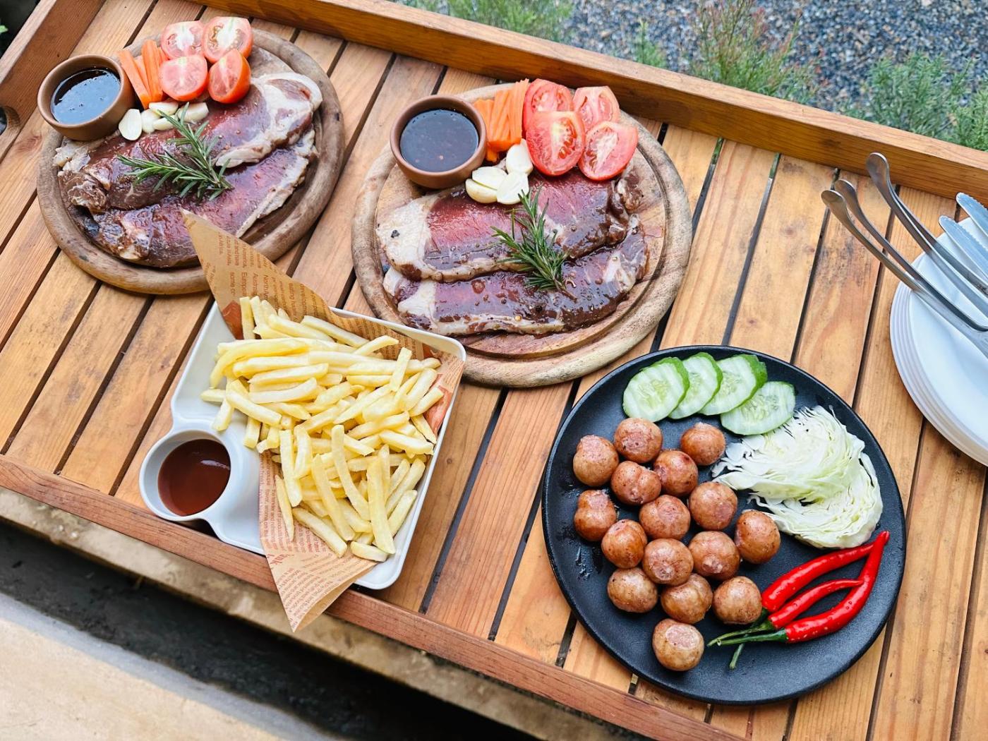 The luxury tent has a picnic areayou can spend a day out in the open.