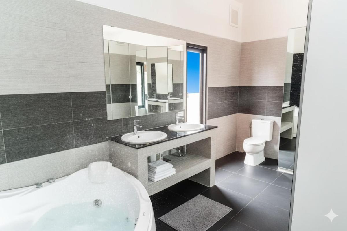 Three-Bedroom Villa. This luxurious villa has a private pool, a hot tub and a spa bath. Guests will find a refrigerator, a dishwasher, kitchenware and an oven in the kitchen. The villa also comes with a barbecue. The spacious air-conditioned villa features a flat-screen TV with streaming services, a washing machine, a private entrance, a tea and coffee maker as well as garden views. The unit has 1 bed.