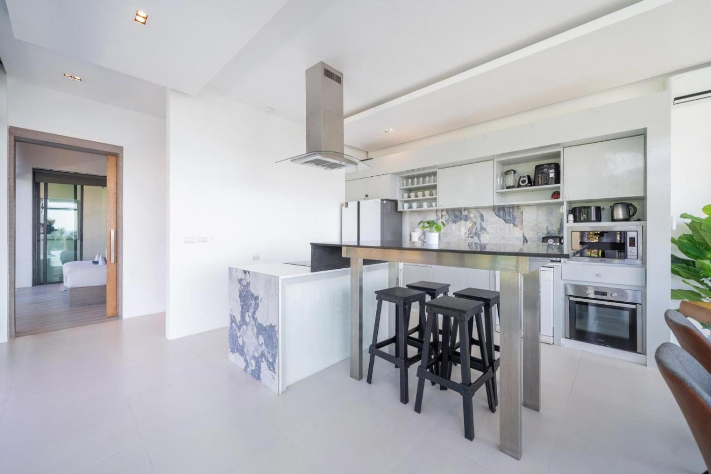 Villa with Private Pool. Featuring a private entrance, this spacious villa also is comprised of 3 separate bedrooms and 3 bathrooms with a shower and a bidet. Guests will find a stovetop, a refrigerator, kitchenware and an oven in the kitchen. The villa also has a barbecue. The air-conditioned villa offers a TV with cable channels, a washing machine, a tea and coffee maker, a dining area as well as sea views. The unit offers 3 beds.