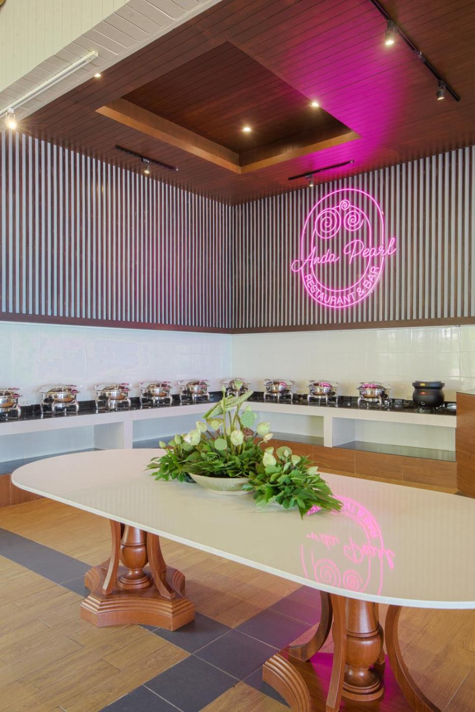 Guests can take a dip in Anda Lanta’s outdoor pool, or have local and Western meals at Pink Pearl Restaurant. They can also sip drinks at the beach front bar.