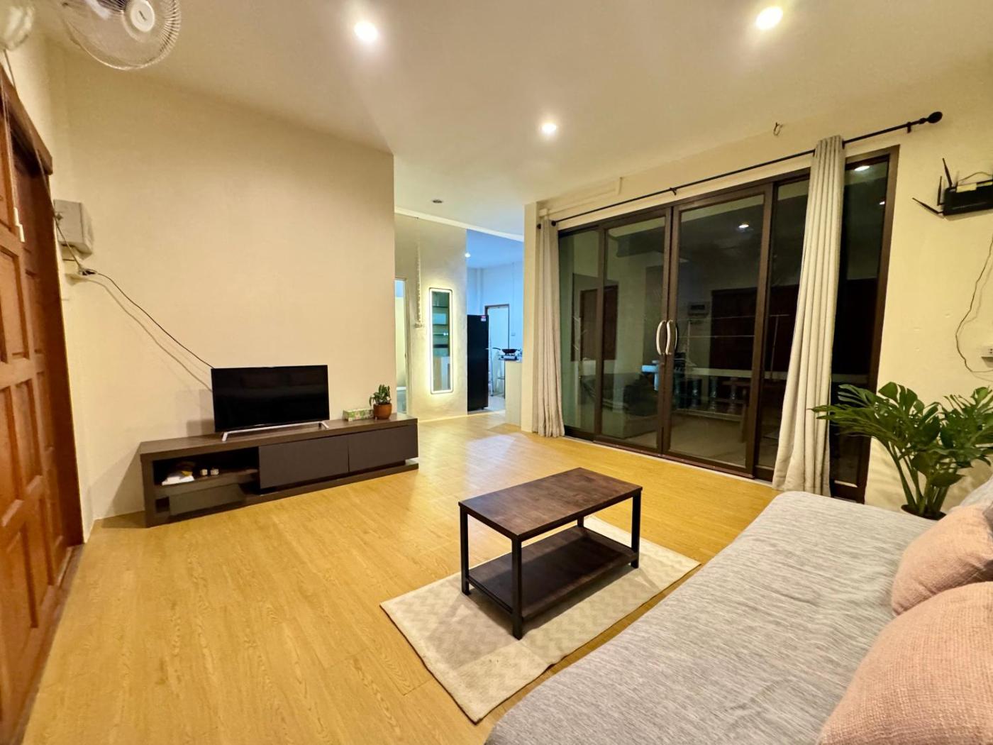 One-Bedroom House. Boasting a private entrance, this air-conditioned holiday home includes 1 living room, 1 separate bedroom and 1 bathroom with a walk-in shower and a bidet. In the kitchen, guests will find a stovetop, a refrigerator and kitchenware. Featuring a terrace with garden views, this holiday home also offers a washing machine and a flat-screen TV. The unit has 2 beds.