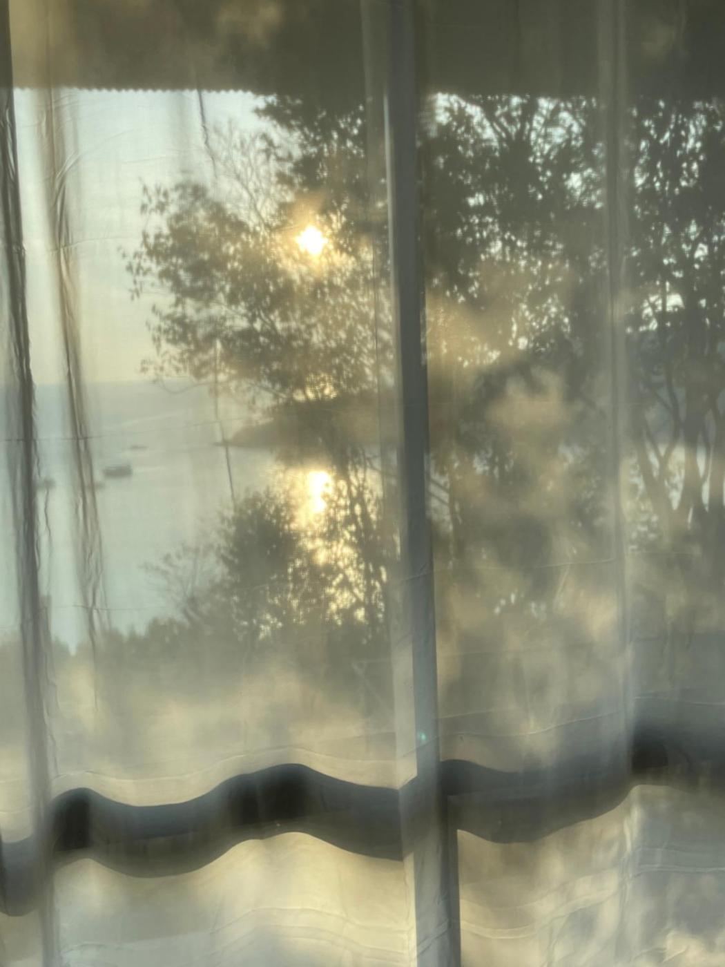 Guests can take in the views of the sea from the balcony, which also has outdoor furniture.
