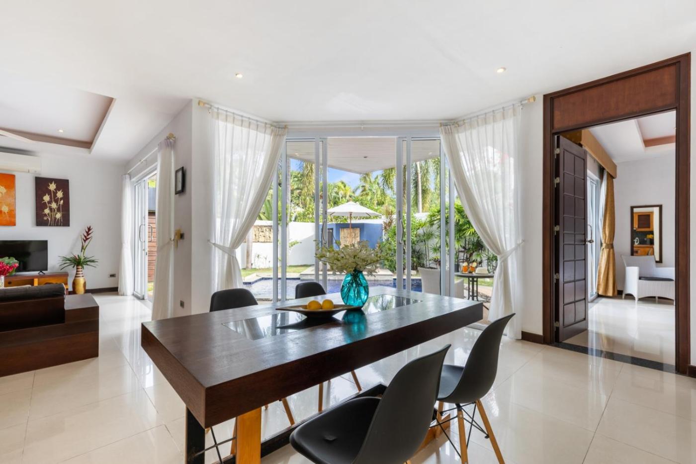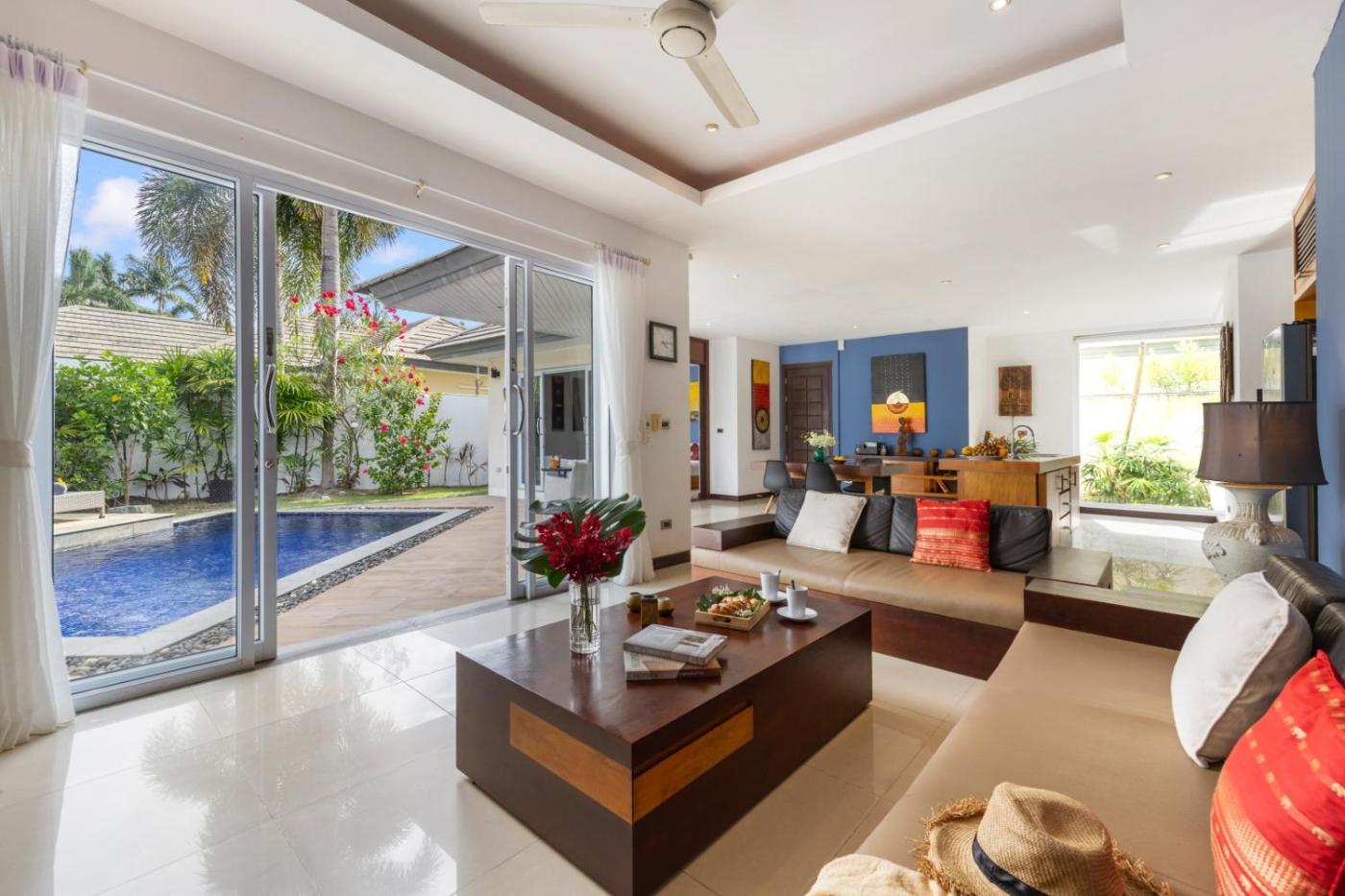 Villa with Private Pool. This villas special feature is the private pool. Featuring a private entrance, this air-conditioned villa consists of a kitchen, 1 bedroom and 1 bathroom with a bath and a shower. Guests can make meals in the kitchen that is equipped with a stovetop, a refrigerator, kitchenware and an oven. The villa provides a flat-screen TV with cable channels, a seating area, a dining area, a wardrobe as well as garden views. The unit offers 1 bed.