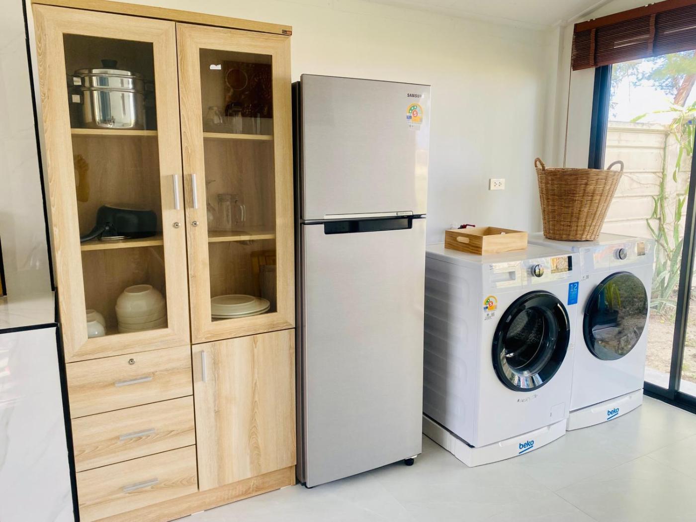 Two-Bedroom House. This air-conditioned holiday home includes 1 living room, 2 separate bedrooms and 1 bathroom with a shower. Guests will find a stovetop, a refrigerator, kitchenware and a microwave in the well-equipped kitchen. The holiday home also features a barbecue. Boasting a balcony with sea views, this holiday home also offers a washing machine and a flat-screen TV with cable channels. The unit has 3 beds.