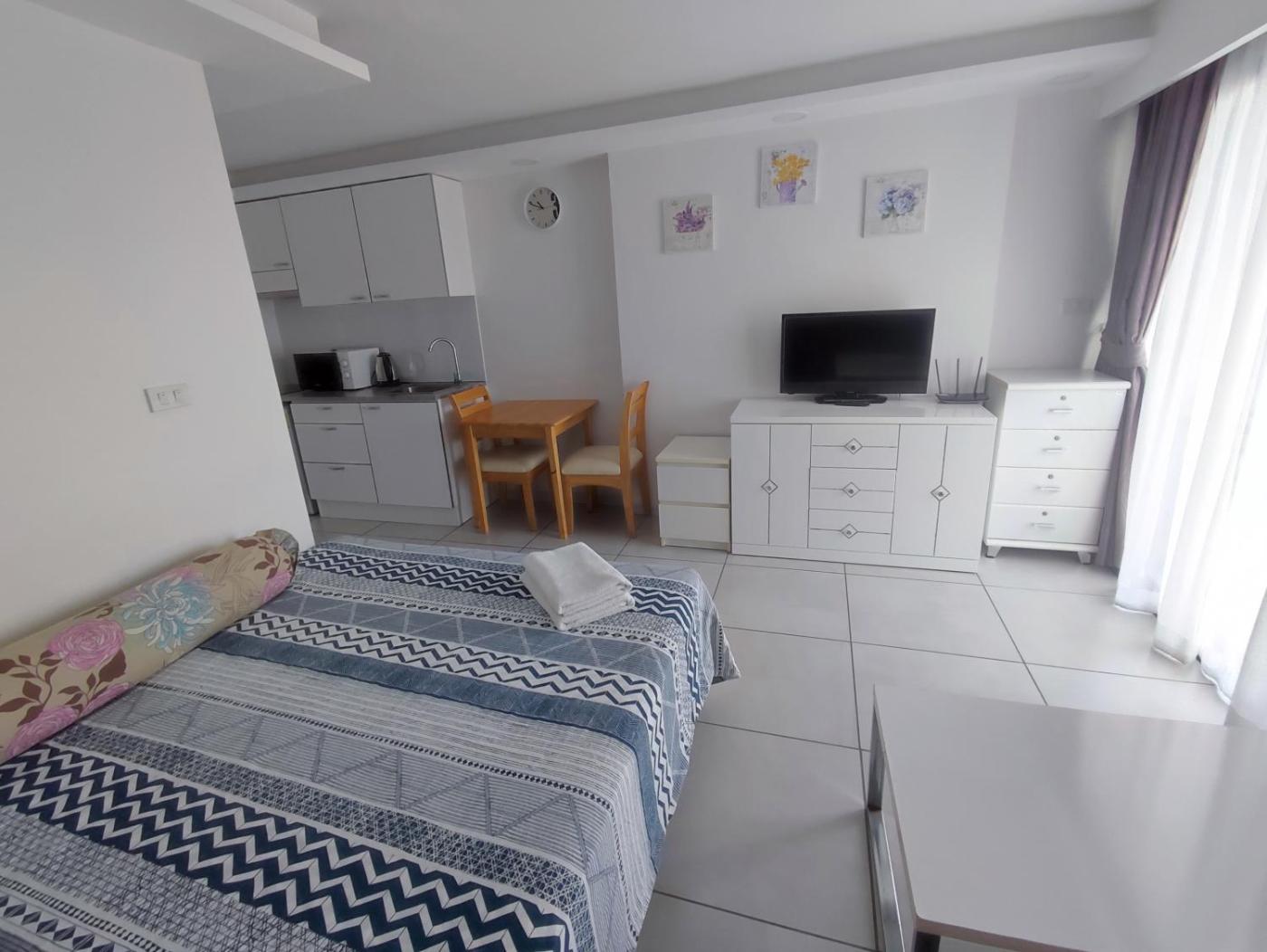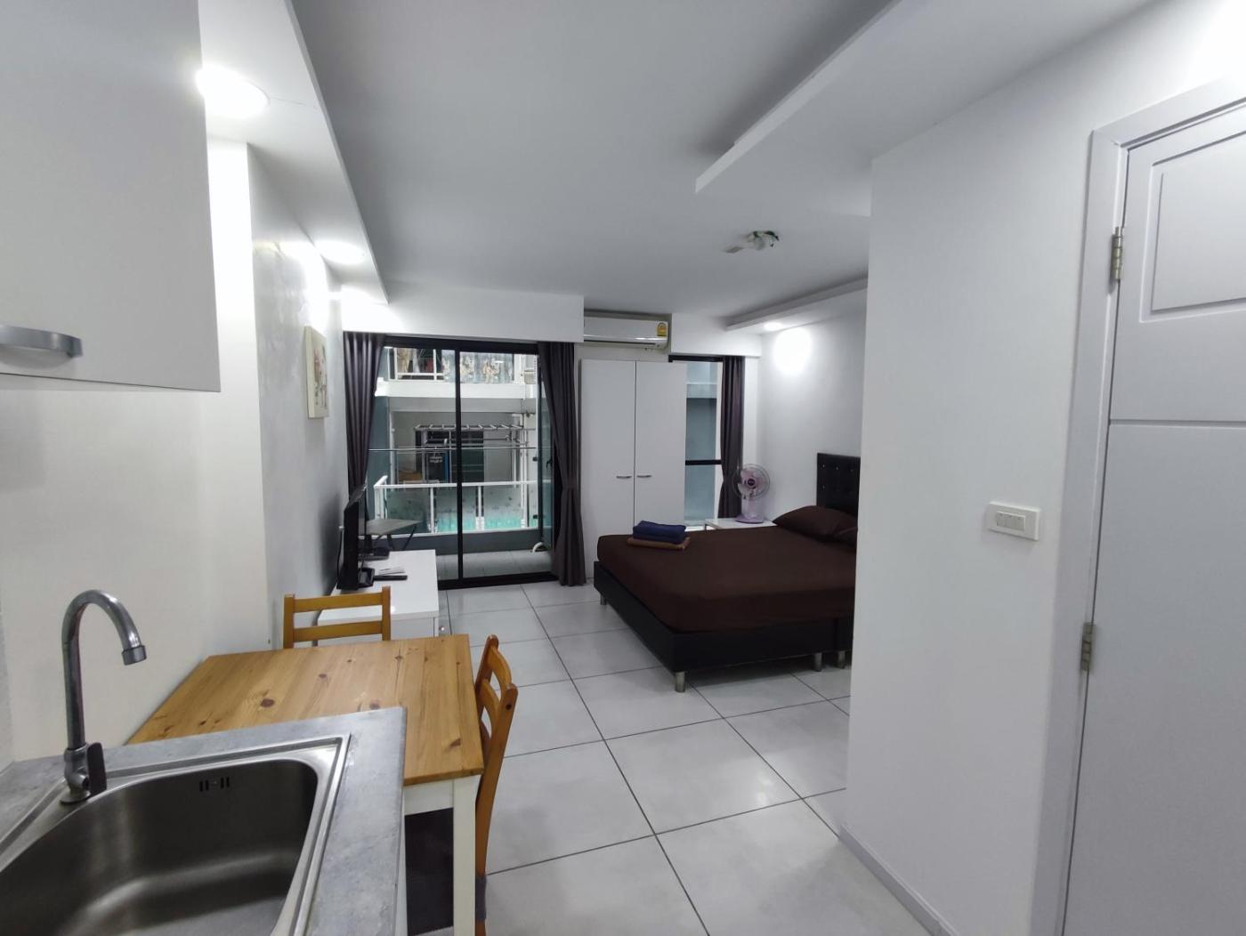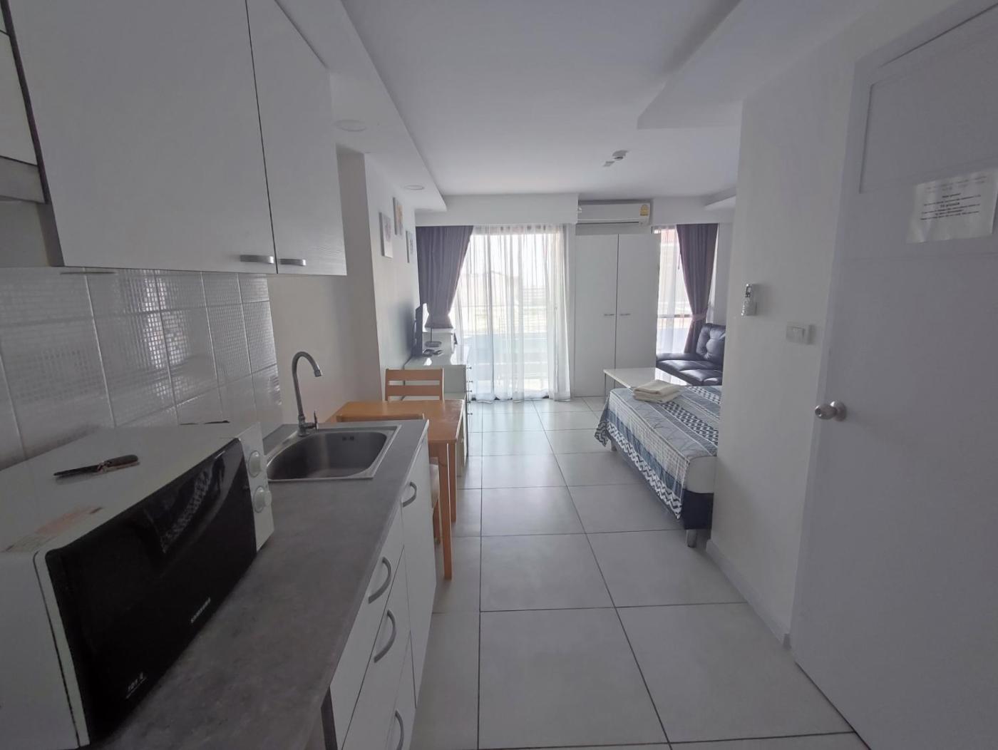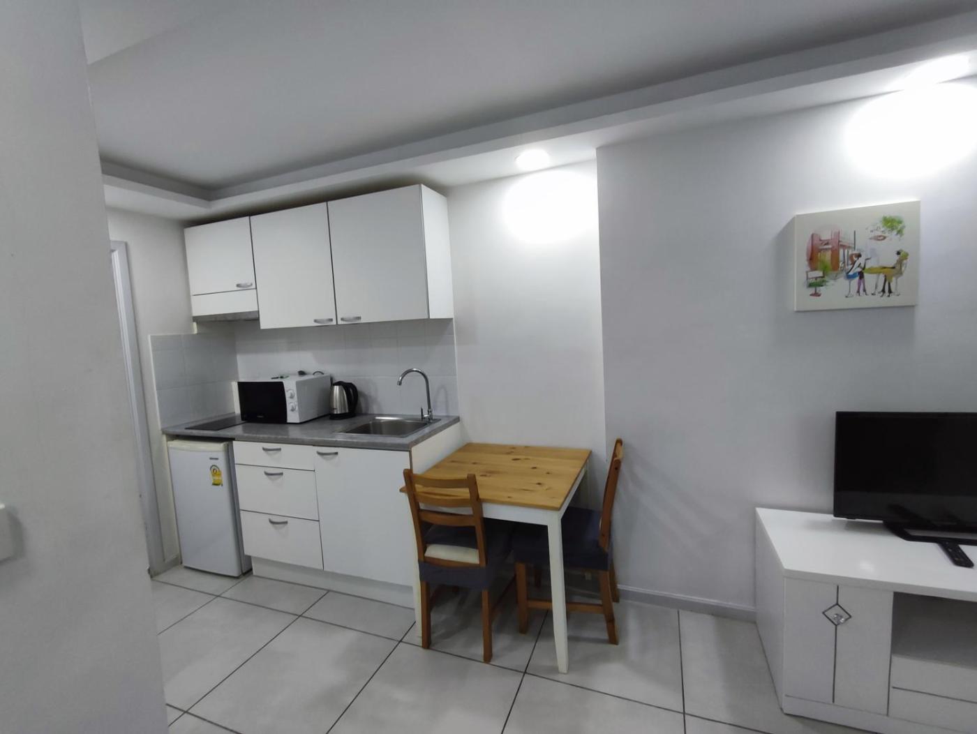 One-Bedroom Apartment. This apartment is comprised of 1 living room, 1 separate bedroom and 1 bathroom with a shower and free toiletries. Guests can make meals in the kitchen that is fitted with a stovetop, a refrigerator, kitchenware and a microwave. The air-conditioned apartment offers a flat-screen TV, a washing machine, a dining area, a wardrobe as well as city views. The unit offers 2 beds. ;